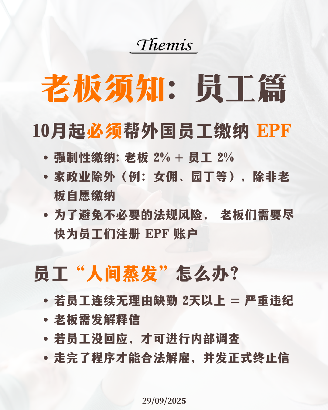 自 2025 年 10 月起,公司必须为符合条件的外国员工缴纳公积金(EPF):