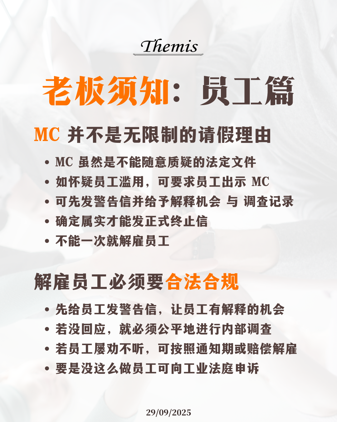 员工管理不仅影响日常运营效率,也直接关系企业的法律风险和长期发展。合规不是负担,而是为了保护公司、员工与老板们的重要方式。遵守雇佣法令、合理处理员工缺勤、病假及解雇事宜,可有效降低争议和法律风险,让企业在面对突发情况时有章可循。即使是小型企业,也应建立清晰的制度和流程,这不仅体现专业和责任,也有助于吸引和留住人才。合法合规的企业环境能增强员工信任感与归属感,提升团队士气与生产力。懂法规、守规矩,是企业稳健经营和持续发展的关键,每一份合规投入,都是为未来打下的坚实基础。