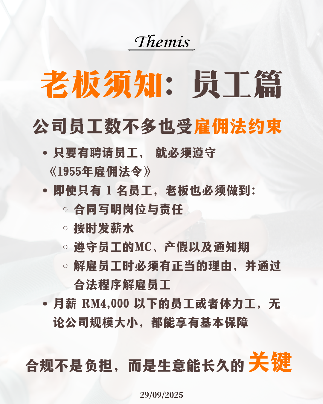 为此,我们整理了企业主在员工管理中最需要关注的 关键法规与操作要点,帮助您在合法合规的前提下,高效管理团队,让企业稳健成长。